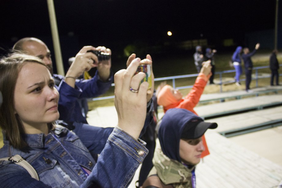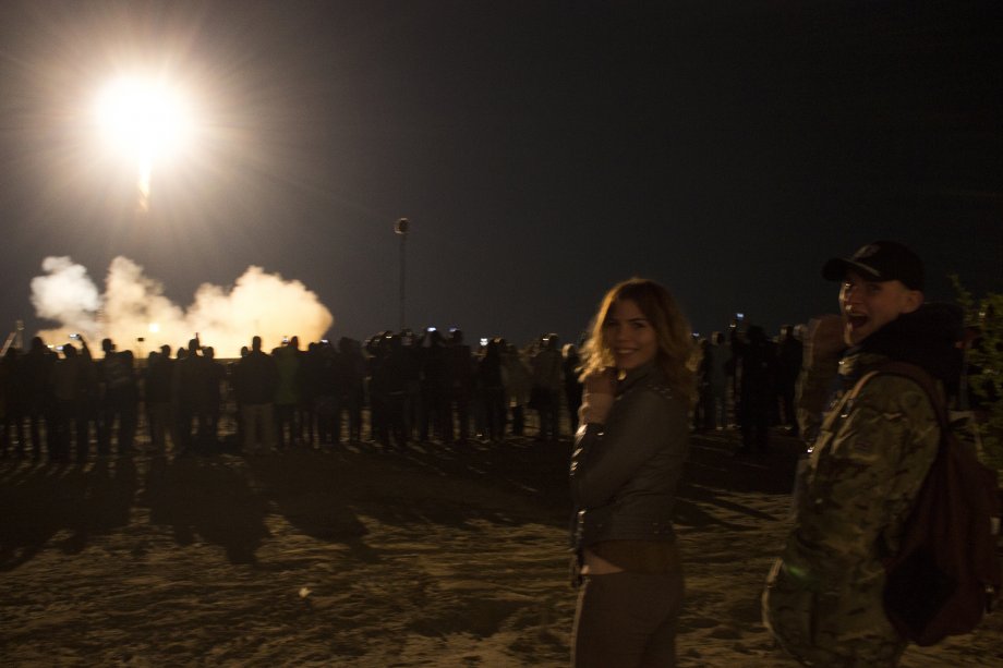 Долгое ожидание прервано. Мы отправляемся на смотровую площадку. Любимое для меня сравнение – словно в предвкушении боя курантов на новый год, все стоят в ожидании чуда. Заветный отсчет: «Три, два, один…Пуск!». И вот белоснежный «Союз» озаряет факелом первой ступени не просто стартовый стол, но и пространство на десятки километров вокруг, словно посреди ночи к нам в гости пришел день. От мала до велика, каждый смотрит вслед красотке. Ракета – мощная и величественная покидает землю, унося на себе три человеческие жизни в стремлении подарить им другое место обитания – международную космическую станцию. От момента, когда она начала сжигать свое топливо, до того как ракета стала сравнима со звездой в небе - зрители были заворожены, околдованы. У кого-то это время пролетело в секунды, у кого-то растянулось на часы, но ни у кого это не прошло бесследно. Мы покидали смотровую площадку счастливыми. И это не голословное заявление - вы можете